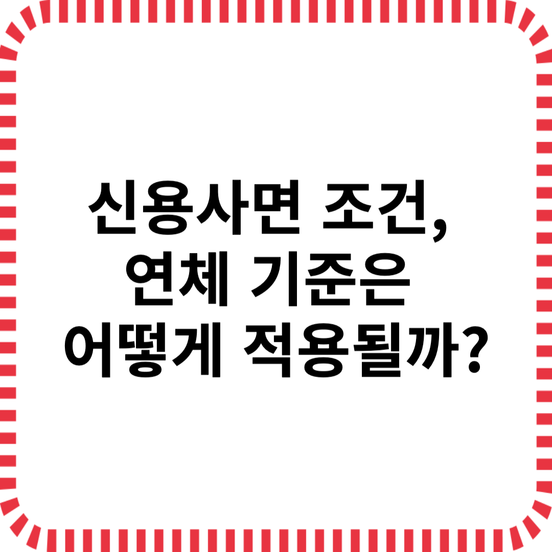 - 신용사면 조건에서 연체 기준은 5일 이상부터 적용되는 경우가 많습니다.