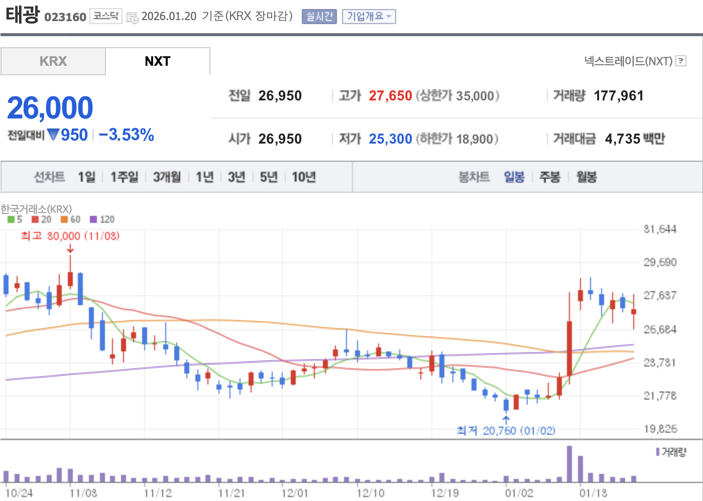 안녕하세요! 오늘은 산업플랜트 엔지니어링 전문기업 태광(023160)의 투자 매력을 분석해보겠습니다. IBK투자증권이 목표주가를 30,000원에서 35,000원으로 상향하며 본격적인 실적 개선을 전망했는데요, 현재 주가 27,800원 대비 약 26% 상승여력이 있다는 분석입니다.