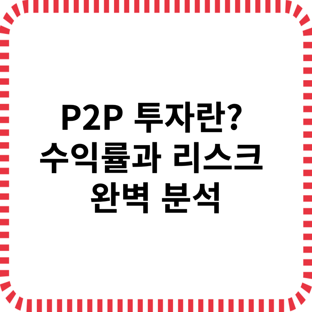 P2P(개인 간) 투자는 온라인 플랫폼을 통해 개인이 기업 또는 다른 개인에게 직접 돈을 빌려주고, 이자로 수익을 얻는 투자 방식입니다. 은행을 거치지 않아 높은 수익률을 기대할 수 있지만, 연체나 부실 가능성도 고려해야 합니다.